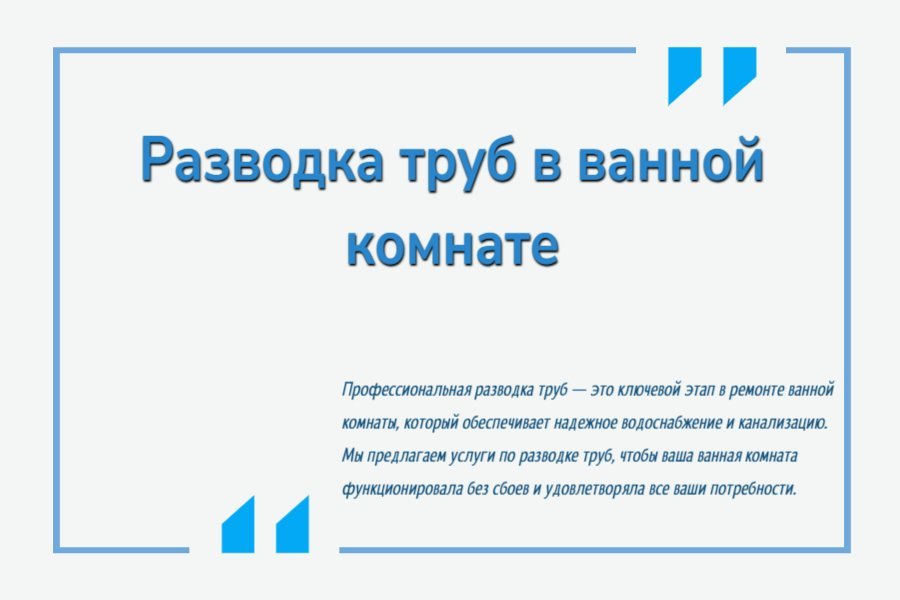 Разводка труб — это основа для комфортной и функциональной ванной комнаты. Доверьте эту задачу профессионалам, и вы получите надежную систему водоснабжения и канализации, которая будет радовать вас долгие годы.