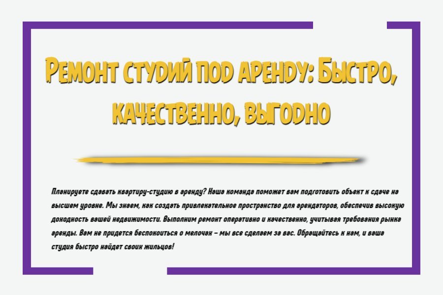 Ремонт студии для сдачи в аренду – это задача, которая требует продуманного подхода, чтобы обеспечить комфорт и привлекательность для арендаторов, при этом минимизируя затраты и сроки выполнения работ. Важно создать функциональное, эстетичное и долговечное пространство, которое будет пользоваться спросом на рынке аренды. Рассмотрим, как провести ремонт студий под аренду, чтобы сделать его быстро, качественно и выгодно.